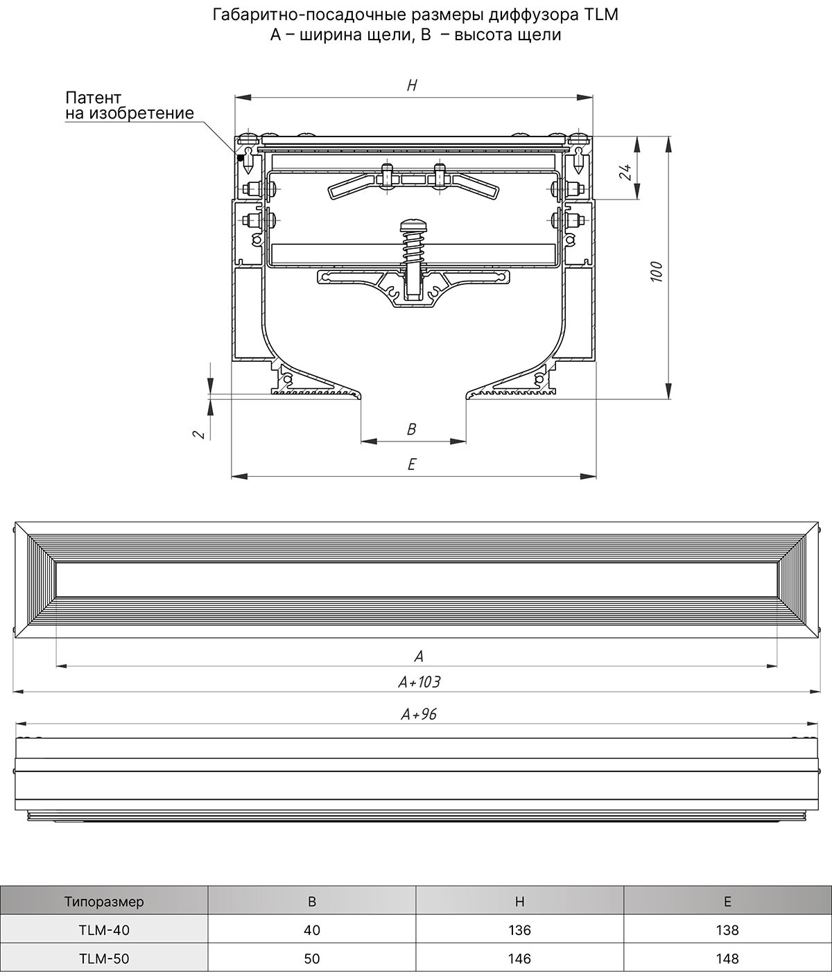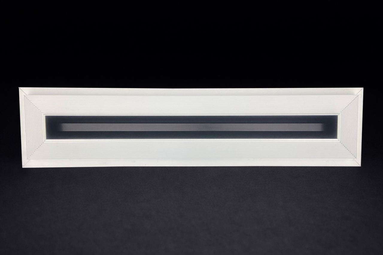 Конструкция вентиляционного щелевого диффузора обеспечивает эффективное распределение воздушных потоков с сохранением живого сечения диффузора и объема подаваемого воздуха при любом положении дефлектора.